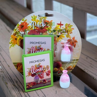 El Pack “Promesas para Llenar tu Vida” combina un maravilloso libro de promesas bíblicas con una delicada figurita inspiradora, creando un detalle completo que fortalece la fe y aporta un toque especial a cualquier espacio.